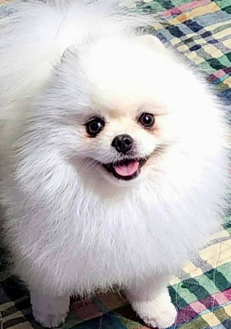 Aegon is one of the most beautiful white Poms I've ever seen. Massive thick coat. He is a lover.