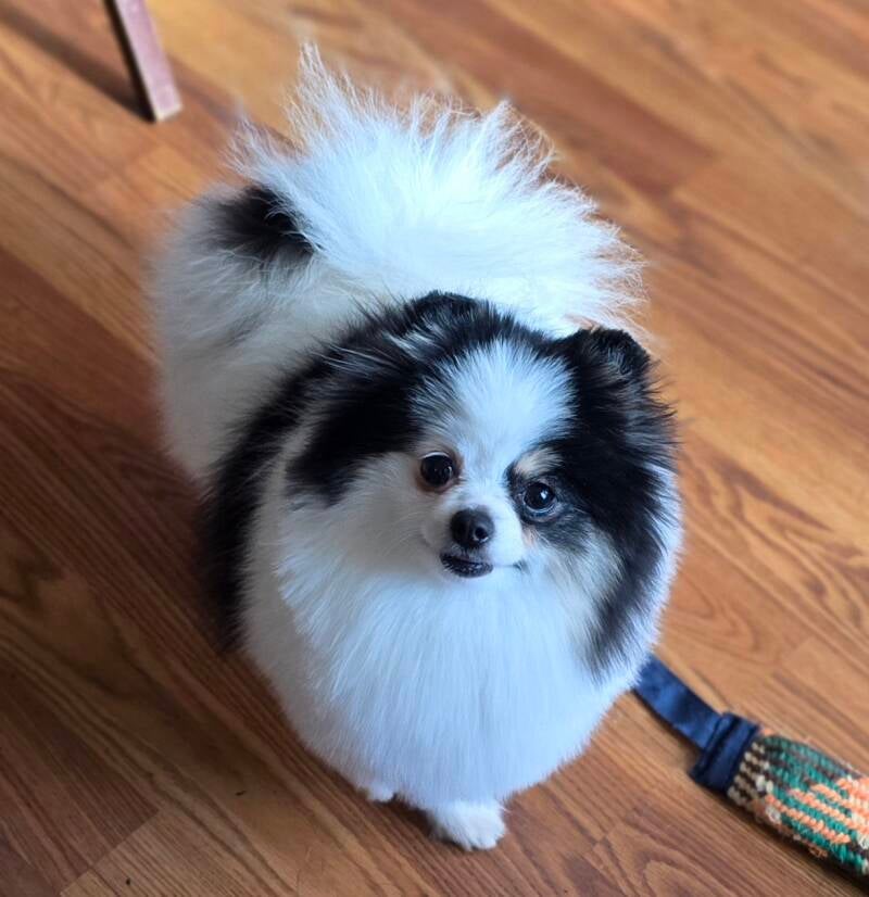 Is a beautiful black and white parti, a Russian import. She has a sweet and loving disposition.