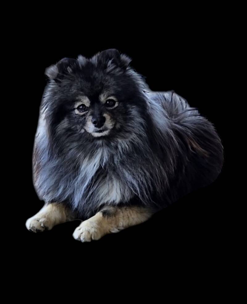 Kuki. Our little Black and Tan Show Girl. Sire is a Beautiful Merle , going back to Ch Mystical Pomeranians and Ch CR Lines. Mama is our Black and Rust Girl Porsche. Kuki has been embarked